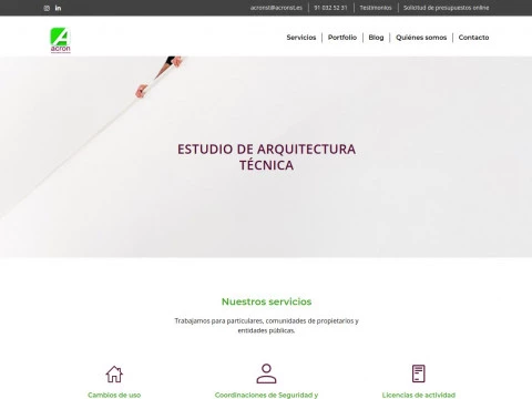 Te preguntarás qué puedes encontrar en la web de Acron. Pues es muy sencillo, encontrarás un amplio abanico de servicios técnicos, que van desde los más sencillos como puede ser la ITE hasta los complejos Proyectos Técnicos. Encontrarás a un equipo de profesionales preocupados por tu satisfacción, que te muestran algunos ejemplos de los trabajos realizados.